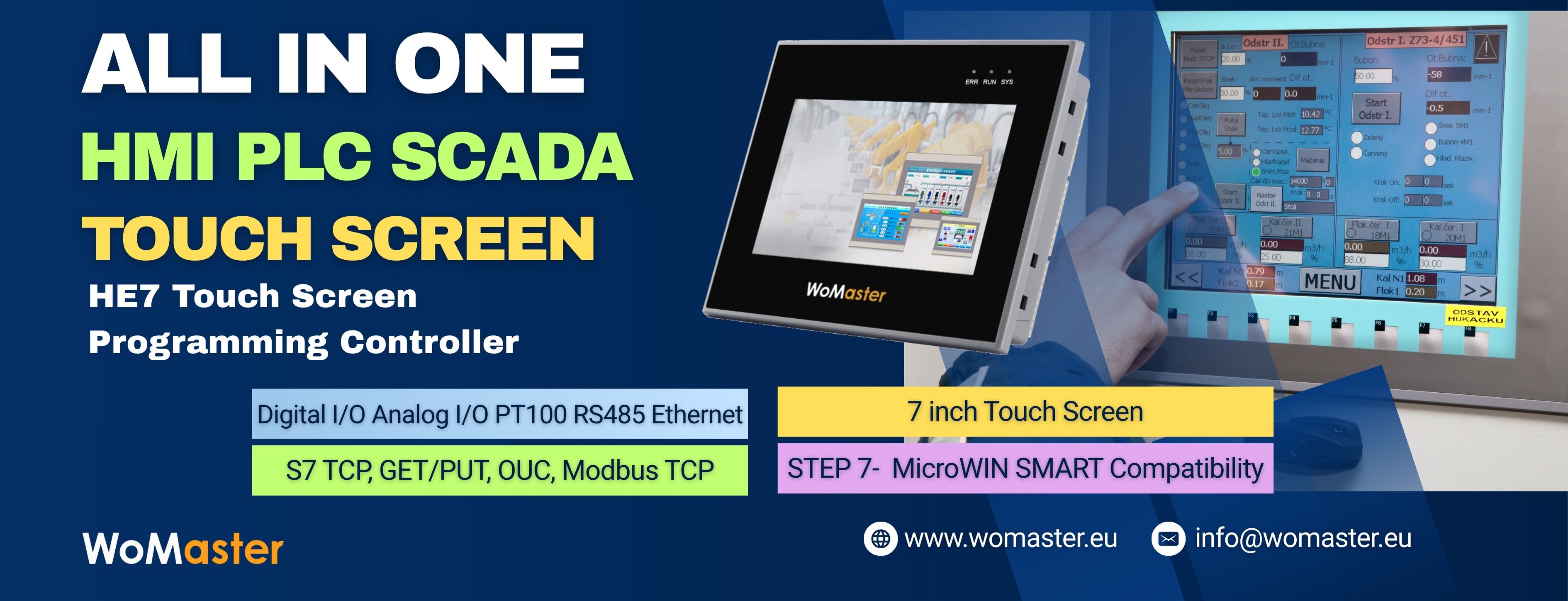 By integrating display and control functionality, the HE7 reduces hardware count, wiring complexity, and points of failure. Its versatile communication support ensures interoperability with SCADA systems, edge gateways, and networked devices. These capabilities align with WoMaster’s broader vision of enabling industrial IoT and edge computing in diverse environments.